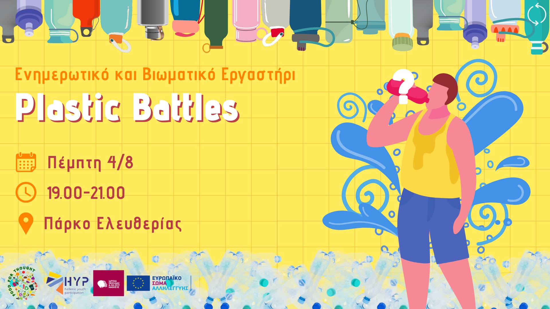 Λίγο πριν κάνεις την καλοκαιρινή σου παύση στην Αθήνα ή εκτός, ενδιάμεσα από την εξόρμηση στη θάλασσα και την αστική καλοκαιρινή ραστώνη, η ομάδα της Food for Thought σου έχει μία δροσερή πρόταση. Το καλοκαίρι περισσότερο από κάθε άλλη εποχή καταναλώνουμε μεγάλες ποσότητες νερού για να παραμένουμε ενυδατωμέν@. Ωστόσο, πολλές φορές η κατανάλωση αυτή συνοδεύεται και από την αγορά πλαστικών μπουκαλιών. Γνωρίζουμε πλέον ότι ένα μπουκάλι νερού χρειάζεται έως και 500 χρόνια για να αποικοδομηθεί, ενώ η χρήση του πραγματοποιείται για διάστημα που μπορεί να κυμαίνεται από λίγα λεπτά έως μερικές ώρες. Παρόλα αυτά, πολλές φορές ο δρόμος από τη γνώση στην πράξη είναι μεγάλος και η αλλαγή των συνηθειών μας είναι μια εξατομικευμένη διαδικασία που δεν είναι πάντα εύκολη. Στο πλαίσιο αυτό, η ομάδα της Food for Thought σας προσκαλεί σε μία εκδήλωση με θέμα τη χρήση του πλαστικού, όπου μέσω της βιωματικής μάθησης και με δημιουργικό και διασκεδαστικό τρόπο θα επιχειρήσουμε να συνειδητοποιήσουμε πόσα μπουκάλια χρησιμοποιούμε σε καθημερινή βάση, ποιες εναλλακτικές λύσεις υπάρχουν, ποιες δυσκολίες συναντάμε στην υιοθέτηση φιλοπεριβαλλοντικών συμπεριφορών και τι θα θέλαμε να αλλάξουμε σε προσωπικό και συλλογικό επίπεδο για να τις πραγματοποιήσουμε. Η πρωτοβουλία νέων "Food for Thought" συγχρηματοδοτείται από το European Solidarity Corps της Ευρωπαϊκής Ένωσης και το Ίδρυμα Νεολαίας Δια Βίου Μάθησης. Περισσότερες πληροφορίες https://www.facebook.com/events/376819271137956