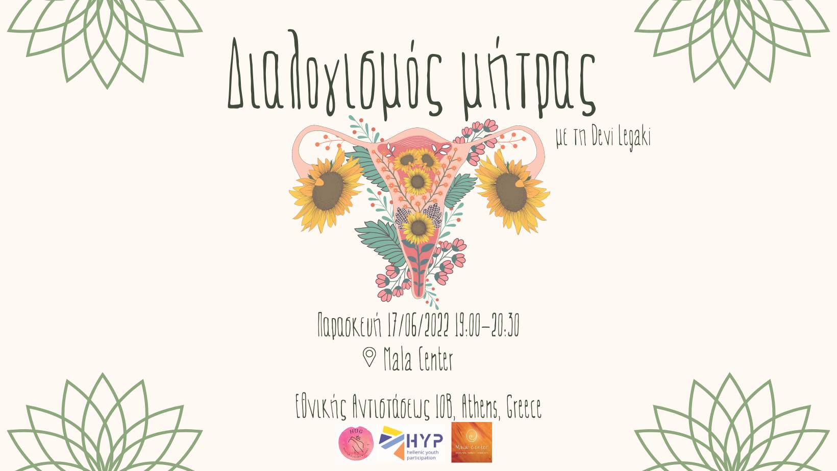 [ΕΛ&EN description available] Σας προσκαλούμε σε έναν βαθύ και χαλαρωτικό διαλογισμό, όπου θα νιώσουμε το σώμα μας και θα συντονιστούμε με την μήτρα μας. Χρησιμοποιώντας την αναπνοή μας ως οδηγό, θα βουτήξουμε βαθιά στους πιο ενδότερους ιερούς θηλυκούς μας θαλάμους, την μήτρα μας. Η μήτρα μας περιέχει μέσα της όλη τη δημιουργική μας δυνατότητα, γεννώντας τη Ζωή, γεννώντας τον Εαυτό, σε έναν αιώνιο χορό Δημιουργίας. Μαζί, θα οδηγηθούμε σε ένα ταξίδι χαλάρωσης μέσα στο βαθύ σκοτεινό χώρο της μήτρας μας και θα συνδεθούμε με τις μοναδικές της ιδιότητες. Τον διαλογισμό θα καθοδηγήσει η Ντέβη Λεγάκη. Δεν απαιτείται προηγούμενη εμπειρία για να εγγραφείτε. Φορέστε άνετα ρούχα που δεν εμποδίζουν την αναπνοή σας. Περισσότερα στον σύνδεσμο https://www.facebook.com/events/1695009060857028