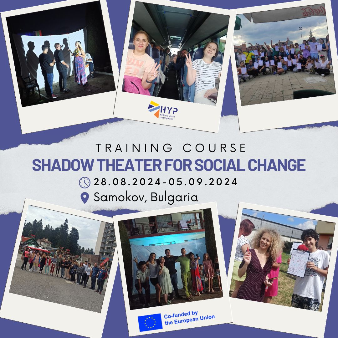Αυτό το εμπνευσμένο εκπαιδευτικό πρόγραμμα καλωσόρισε συμμετέχοντες ηλικίας 18 ετών και άνω για να ανακαλύψουν τον κόσμο του θεάτρου σκιών. Παρείχε μια μοναδική ευκαιρία όχι μόνο να εξερευνήσουν αυτή τη γοητευτική μορφή τέχνης αλλά και να μάθουν πώς να την εφαρμόζουν στη δουλειά τους. Οι συμμετέχοντες έγιναν μέρος μιας δυναμικής ομάδας εργαζομένων σε θέματα νεολαίας, εκπαιδευτών και εκπροσώπων οργανισμών από όλη την Ευρώπη, που συνεργάστηκαν και αναπτύχθηκαν μαζί μέσω της πρακτικής και βιωματικής μάθησης.