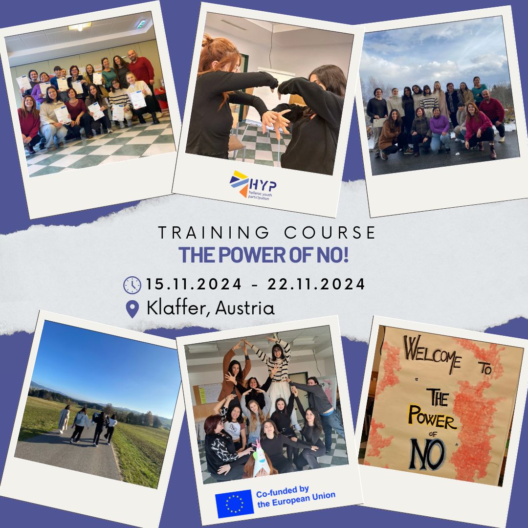 Με μεγάλη χαρά συμμετείχαμε στο εκπαιδευτικό πρόγραμμα "The Power of NO," το οποίο πραγματοποιήθηκε στο ειδυλλιακό Klaffer της Αυστρίας. Ήταν μια μοναδική εμπειρία που μας έδωσε την ευκαιρία να αναπτύξουμε πολύτιμες δεξιότητες, όπως η διαχείριση των συναισθημάτων μας και η ενδυνάμωση της ικανότητάς μας να λέμε "όχι" με αυτοπεποίθηση και σεβασμό στις δικές μας ανάγκες. Το περιβάλλον ήταν μαγευτικό και η φιλοξενία εξαιρετική, δημιουργώντας την ιδανική ατμόσφαιρα για προσωπική ανάπτυξη και ουσιαστική συνεργασία. Ζήσαμε στιγμές έμπνευσης και πραγματικής σύνδεσης, που θα μας μείνουν αξέχαστες!