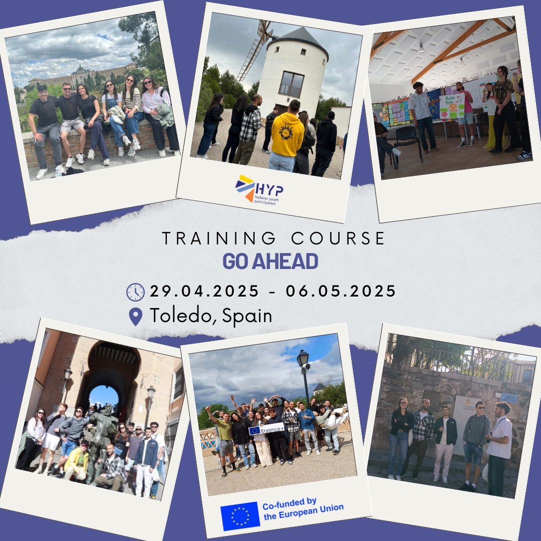Κατά τη διάρκεια του εκπαιδευτικού προγράμματος «Go Ahead», άτομα ηλικίας άνω των 18 ετών έκαναν μια βαθιά βουτιά στον τομέα της εργασίας για τη νεολαία. Η αύξηση των γνώσεών τους σχετικά με τη συμμετοχή των νέων, η ανταλλαγή απόψεων μεταξύ τους σχετικά με το ρόλο της εργασίας για τη νεολαία σε διαφορετικές χώρες και η εκμάθηση νέων μεθόδων είναι μερικές από τις πτυχές με τις οποίες οι συμμετέχοντες είχαν τη δυνατότητα να ασχοληθούν. Το πρόγραμμα πραγματοποιήθηκε μεταξύ 29 Απριλίου και 6 Μαΐου 2025 στο όμορφο Τολέδο της Ισπανίας.