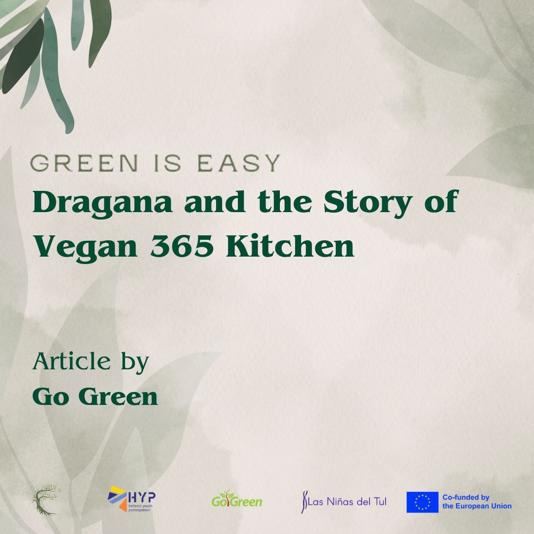 Από το 2017, η Dragana είναι η καρδιά της Vegan 365 Kitchen, μιας τοπικής, οικογενειακής επιχείρησης που αποδεικνύει ότι η βιωσιμότητα μπορεί να είναι τόσο νόστιμη όσο και προσιτή. Αυτό που ξεκίνησε ως προσωπική δέσμευση για ηθική διατροφή έχει γίνει μια ακμάζουσα vegan κουζίνα που προσφέρει 100% φυτικά γεύματα, όλα φτιαγμένα με αγάπη - και με τοπικά προμηθευόμενα υλικά.